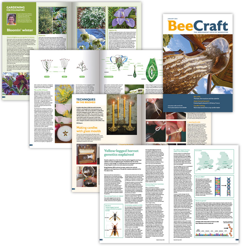 BeeCraft is written for beekeepers at all levels of experience. The magazine contains up-to-date articles on beekeeping practice, equipment, news and features from across the UK and around the world, clear presentations of the latest bee science and research, and disease management. In addition, BeeCraft features include gardening for pollinators, honey recipes, beekeeping history, and beautiful honey bee art and photography.