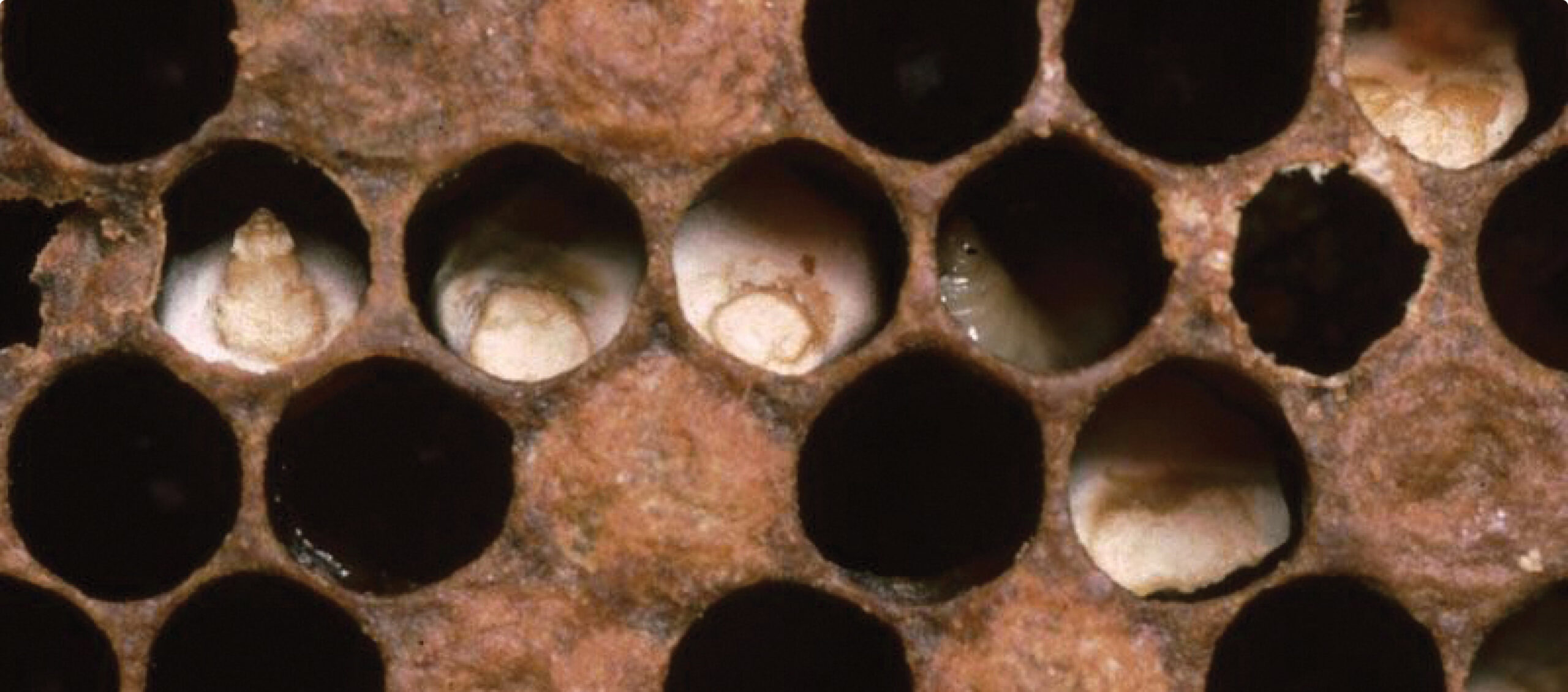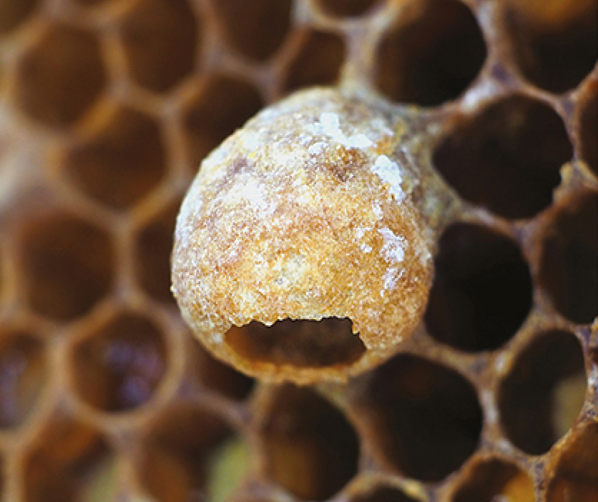 Last month, I mentioned that chilled brood can be associated with chalkbrood. Chalkbrood is a fungal disease caused by Ascosphaera apis, which affects developing honey bee brood. Chalkbrood is an opportunistic pathogen and tends to be most prevalent during the spring and early summer when colonies are growing quickly; this is when the larvae are most likely to become chilled, making them more susceptible to infection. The fungus grows best at temperatures slightly below optimal brood rearing (which is 34.5C), so this is why chalkbrood is often associated with chilled brood. Chalkbrood is fatal to infected larvae and can result in a decline in bee numbers and honey production, but it does not typically cause the demise of a whole colony.