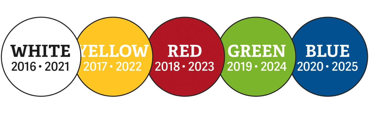 If you make new queens from your swarm control splits, you may want to consider marking them. Posca pen markers are perfect for the job as they don’t contain any harmful ingredients, and the nib is the right size for making a single mark on the queen’s thorax. If you are uncertain about queen handling, I recommend purchasing a one-handed queen catcher which will help you hold the queen securely without damaging her. I would also recommend lots of catching and marking practice with drones (see Michael Badger’s tip on page 42). The convention is to mark queen bees with a different colour each year. This is a universal standard, so if you get a marked queen from another beekeeper, you know how old she is. This year, queen bees should be marked red and this will change every year following the same pattern over a five-year period.