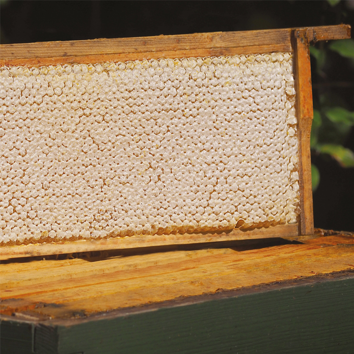 Avoid travel-staining of comb honey by the bees by marking the frames so that you know which are for cut comb, removing them as soon as the whole comb is sealed. Keep your best frame for the autumn shows.