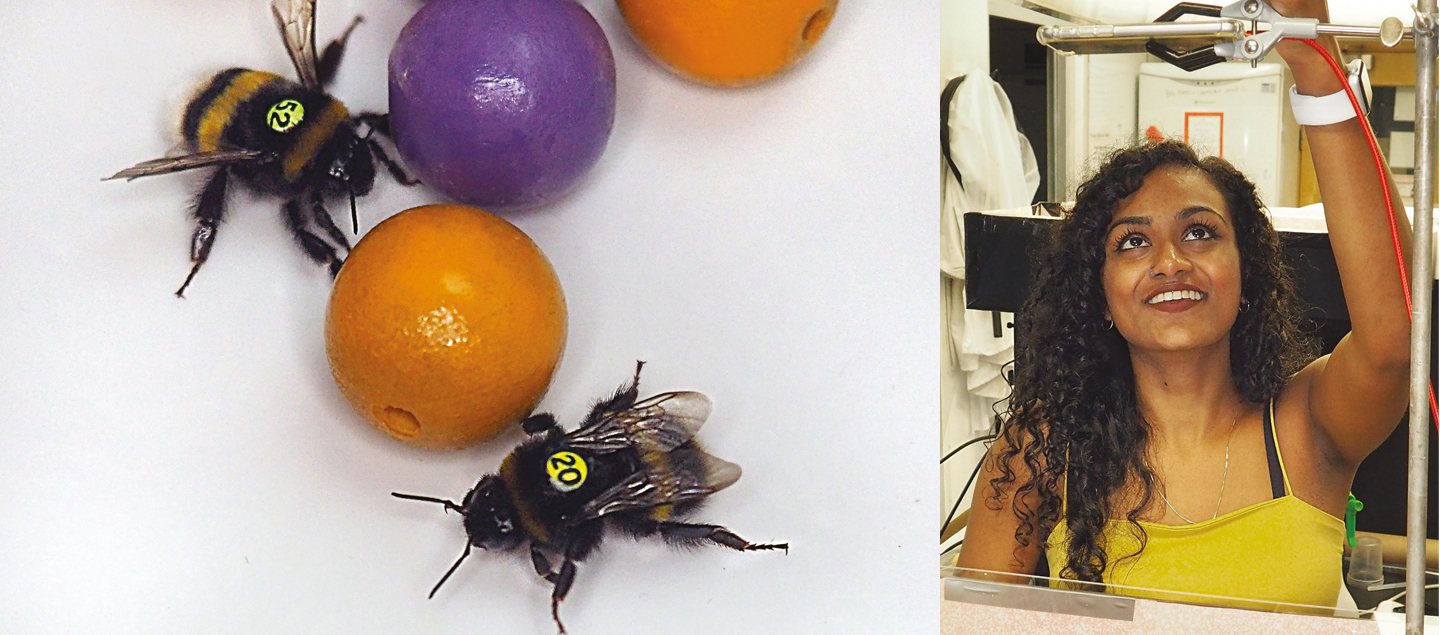 Originally considering a medical degree, Samadi Galpayage became more interested in ecology and evolutionary biology and changed tack. Having obtained a biology degree at the University of Bristol and a Masters at Queen Mary, she is now working towards a PhD. Watching animal behaviour fascinates her, and that is fortunate because her work involves patiently watching, videoing and recording bumblebees moving balls.